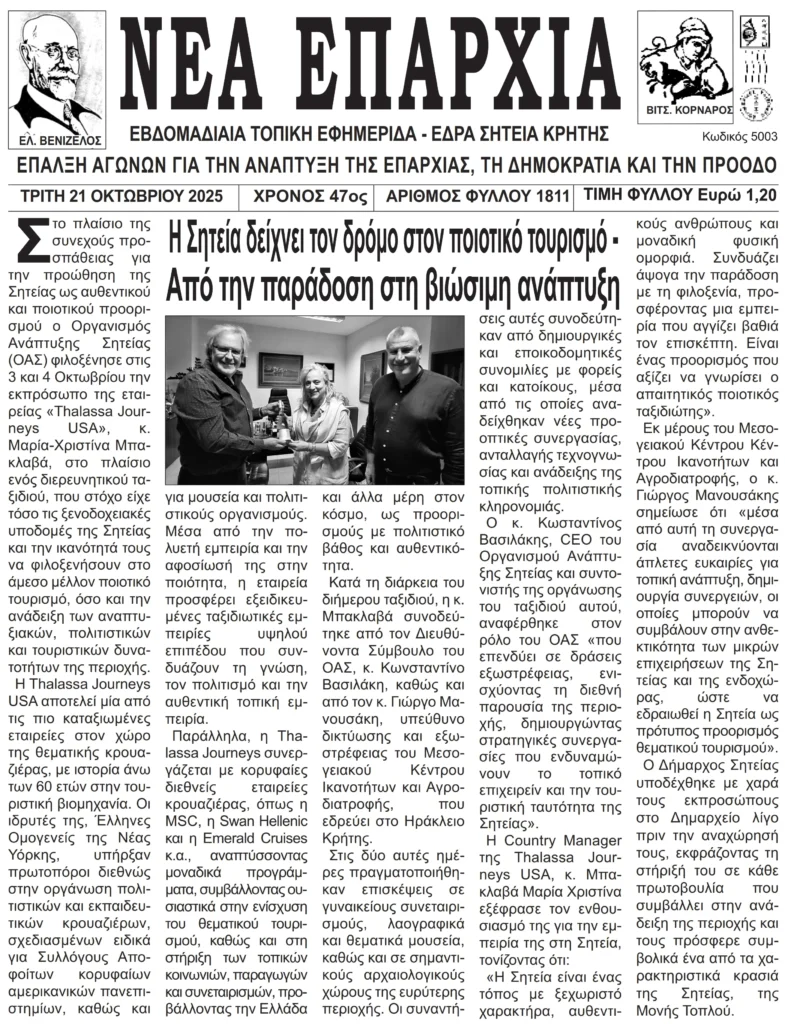Πρωτοσέλιδο εφημερίδας “Ιεράπετρα 21ος Αιών” 23/10/2025